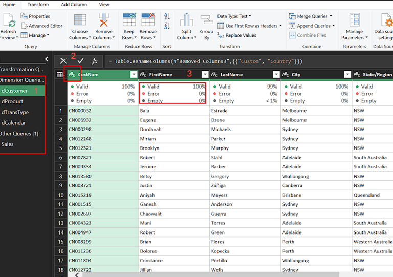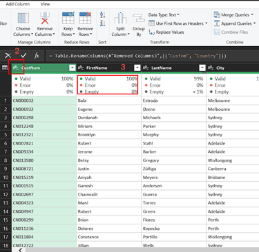 We check for column quality by considering the valid, errors and empty cells of each field of every table to double check the validity of our cleansing process.